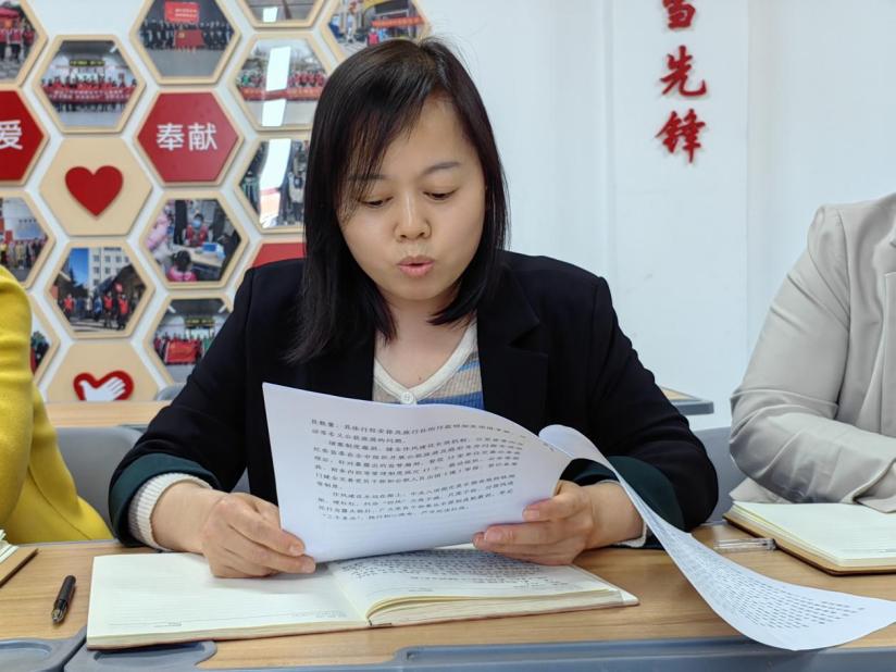 宣传委员任旭凯领学了习近平总书记在中央党校建校90周年庆祝大会暨2023年春季学期开学典礼上发表的重要讲话《坚守党校初心 努力为党育才为党献策》;青年委员李政领学了习近平总书记在参加江苏代表团审议时的重要讲话《牢牢把握高质量发展这个首要任务》;党员教师吴凤珍领学了廉洁自律警示案例《揭掉公款旅游“隐身衣”》等内容。