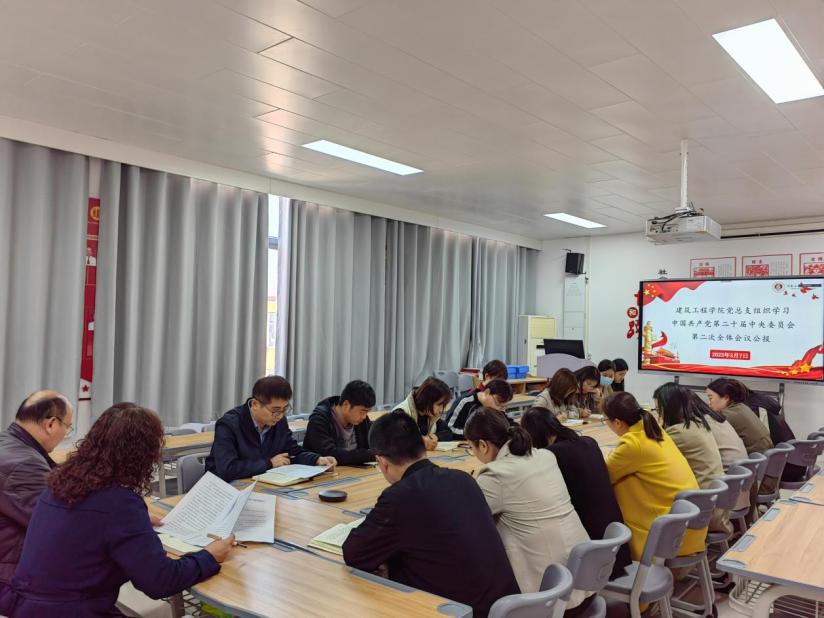 2023年3月7日下午,建筑工程学院党总支在办公楼516党员活动室组织开展政治理论学习活动。本次学习采取东西校区视频连线,线上、线下相结合的方式,会议由建筑工程学院院长张虎主持,党总支书记马春燕及全体教职工参加会议。