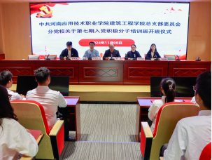 为深入学习贯彻习近平总书记关于党的建设的重要论述,进一步加强学生党员队伍建设,夯实入党积极分子的思想政治基础。2024年11月8日,建筑工程学院党总支在开封校区北院D102会议室隆重举行了第七期入党积极分子培训班开班仪式。开班仪式由学院党总支副书记刘亚娟主持,学院党总支书记张虎,青年委员任旭凯及部分党员教师出席开班仪式。