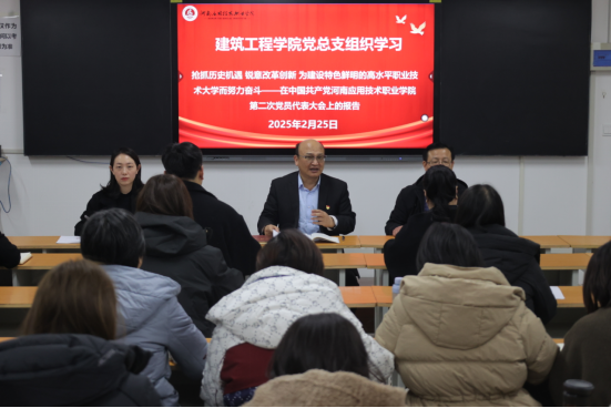 张虎强调,全体教职工必须认真学习闫俊山书记在学校第二次党代会上做的报告,紧跟学校整体发展战略,结合学院专业特色,积极落实各项任务。全体教职工要提高政治站位,将党建工作与教学、科研、管理等各项业务工作深度融合。在实际工作中,以党建引领学院发展,在教学方法创新、人才培养模式改革、产教融合推进等方面,充分发挥党组织的战斗堡垒作用和党员的先锋模范作用,为学院发展注入强大动力,为建设特色鲜明的高水平职业技术大学贡献力量。
