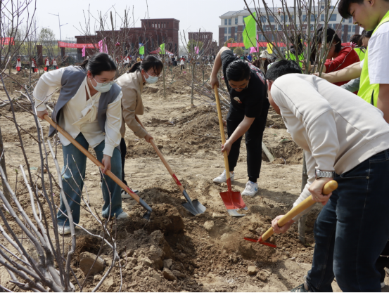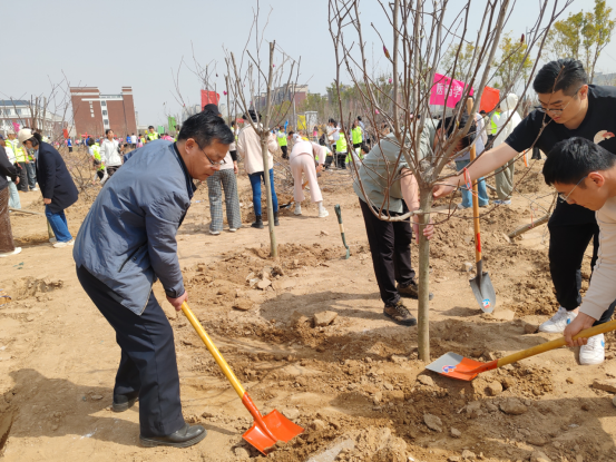 活动现场,在党总支书记张虎简要介绍活动意义与流程后,大家迅速投入到植树工作中。党员教师们和入党积极分子们热情高涨,分工明确,密切协作。大家手持工具,干劲十足,党员教师们充分发挥模范带头作用,熟练地挥锹铲土、扶苗培土、提水浇灌,每一个环节都认真细致、一丝不苟。在大家齐心协力的努力下,一棵棵树苗扎根在校园的土地上,在微风中摇曳生姿,展现出蓬勃的生命力,形成了一片充满生机的“党员先锋林”。