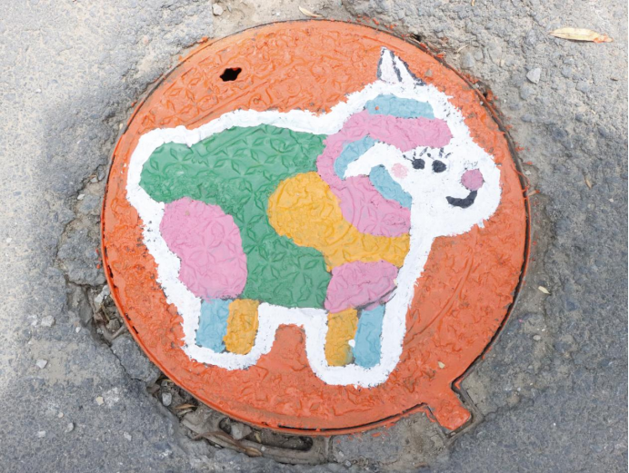 活动现场,党员师生们充分发挥建筑专业优势,将艺术创意与乡村特色相融合。他们手持画笔,蘸取五彩颜料,在井盖上精心绘制出一幅幅生动有趣的图案。有憨态可掬的小猪、活泼灵动的兔子、俏皮可爱的小狗,还有色彩斑斓的小羊。这些图案不仅为乡村环境增添了趣味性和艺术感,更传递出积极向上的生活态度和对乡村美好未来的期许。