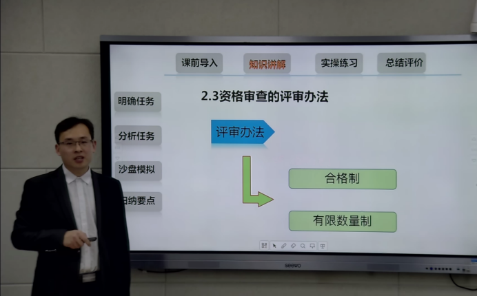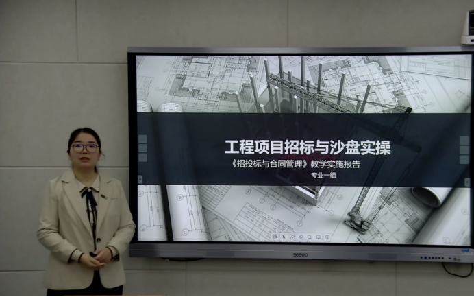 建筑工程学院教师在张虎院长、娄焕副院长、教务主任任旭凯的组织安排下,教师自由组队,选取授课内容,积极备赛2022年校赛。王丹丹老师主持、鞠杰老师、王琮皓老师、董帅老师参与的《工程项目招标与沙盘实操》课程报名参加校赛,并最终通过网络初评晋级决赛。