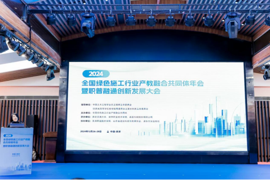 2024年12月27日,全国绿色施工行业产教融合共同体年会暨职普融通创新发展大会在陕西西安隆重召开。本次大会以“绿色创新、产教融合、职普融通、共谋发展”为主题,旨在推动绿色施工行业的产教融合,促进职业教育与普通教育的融合发展,共同探索行业发展的新路径。