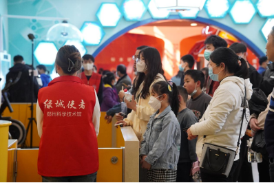 早上7点,志愿者们准时在校门口集合,身穿绿马甲有序前往郑州科技馆。在抵达后,工作人员对大家进行了简单的培训,并根据馆内的需求进行分组,随后便共同投入到各自的工作岗位中去。有些同学在科技馆门口辅助检票,帮助安保维持进馆秩序,防止发生拥挤;有些同学在负一楼4D影院辅助检票,分发和清洗眼镜……在为期两天的志愿服务活动过后,志愿者们与科技馆指导员进行了合影留念,脸上洋溢着开心的笑容。