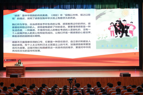 张慧以“资助育人 筑梦前行”为主题,聚焦“政策解读、榜样引领和心怀感恩”三个关键词,围绕“奖、助、贷、勤、免、补”五个方面,向同学们详细介绍了国家奖学金、励志奖学金、助学金、助学贷款、服兵役教育资助等等资助政策,系统说明了国家助学贷款、绿色通道和学费减免政策、家庭经济困难学生认定工作流程,传递出“不让一位学生因家庭经济困难而失学的”资助育人理念。她勉励学生要自己担当起时代赋予的重任,争做一名有理想、敢担当、能吃苦、肯奋斗的新时代好青年。