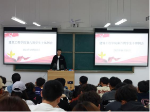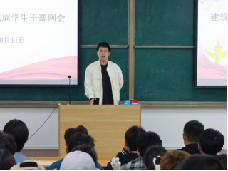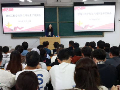 为进一步加强学生干部队伍建设,提高学生自我服务、自我管理、自我教育、自我监督的意识和能力,增进各部门之间的交流,提高工作水平,建筑工程学院于2023年10月11日在开封校区A101教室(郑州校区B201教室)组织召开第六周学生干部例会。会议由建筑工程学院学工办主任史真主持,团总支书记王莹、辅导员赵影、罗斐以及各班班长、副班长、团支书、22级、23级学生会成员参加。