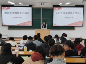 为提高学生干部先锋模范作用,调动学生干部积极性,引导学生干部明确工作方向和工作重点。2024年3月18日,建筑工程学院在开封校区A101(郑州校区B201)教室组织召开第四周学生干部例会。会议由建筑工程学院学工办主任史真主持,团总支书记王莹、辅导员宋雅雯以及全体学生会成员、班长、副班长、团支书参加。进行总结,并对下一步工作做出规划。各部门负责人表示以后将与其他各部门加紧联系,相互了解,增强服务意识,发挥主人翁精神,携手共建更加美好的建工大家庭!