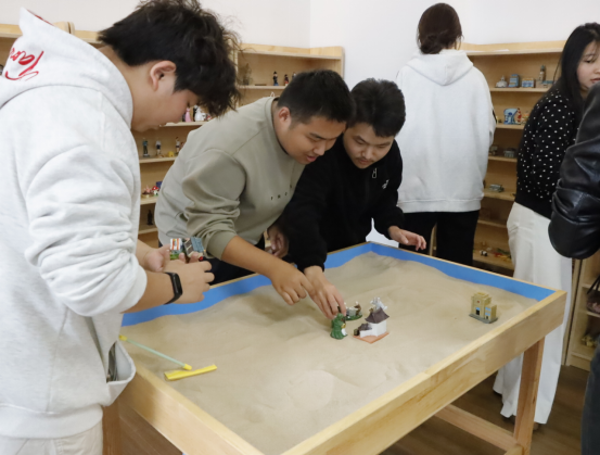 活动中,心理健康中心教师以“认识心理资源,学会自我关怀”为主题,带领学生依次参观了接待咨询室、情绪疏导室、团体辅导室及放松训练室。在情绪疏导室,教师详细介绍了沙盘游戏、情绪宣泄设备的使用方法,“通过沙具摆放梳理内心困惑,借助安全宣泄释放压力,这些都是帮助大家调节情绪的实用方式”;在放松训练室,学生们现场体验了生物反馈放松椅、正念冥想设备,亲身感受专业工具带来的身心舒缓效果。