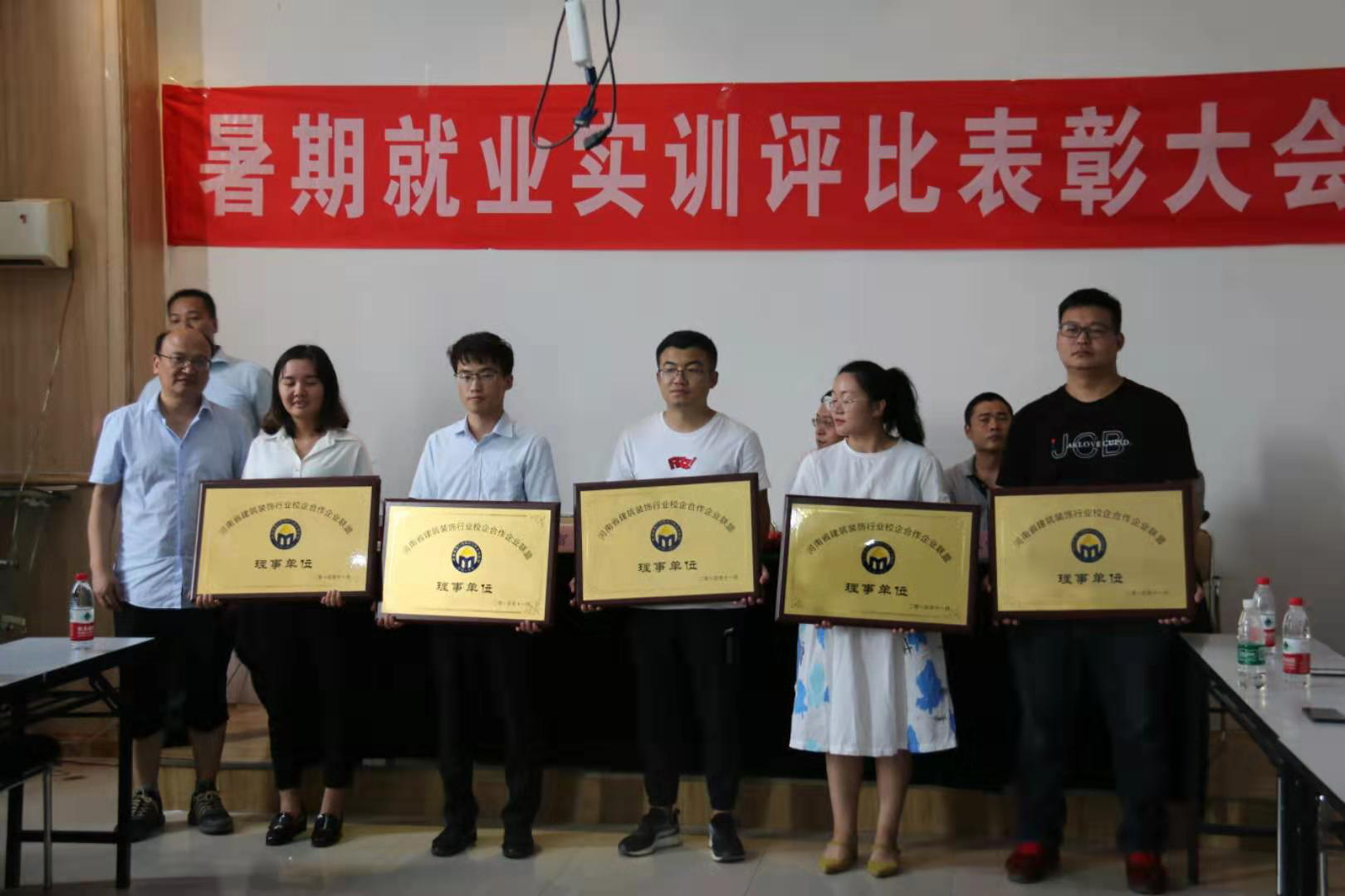2019年8月26日,我院张虎院长、任旭凯老师和宋春磊老师一行前往华夏星博实训基地进行了建筑工程学院校企合作专业2019年暑期实习总结表彰大会。参与此次表彰大会的企业有东易日盛、沪上名家、华普装饰、河南建威工程监理有限公司、晟居装饰、郑州乐豪斯、蓝集装饰、都驰全屋家具定制、龙发装饰、苏人装饰、裕丰装饰等。