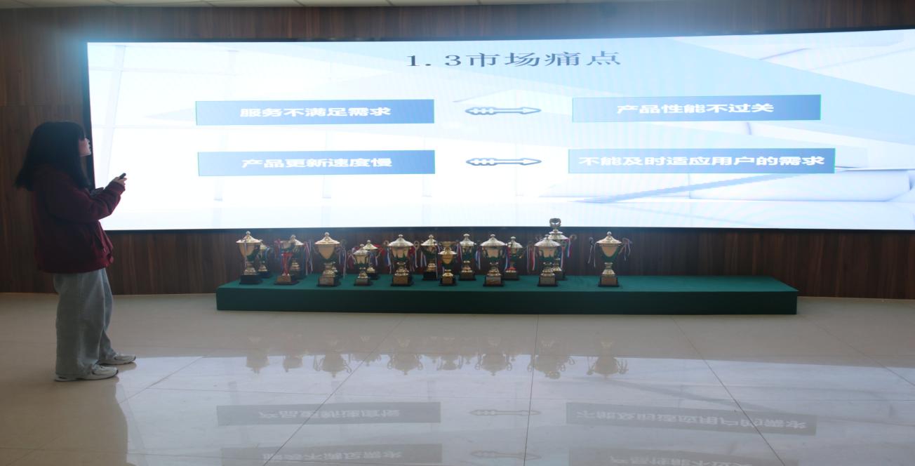 12组参赛队伍通过丰富的演讲向老师和同学们展现了他们对创业的认识,他们分别从项目主旨、产品介绍、市场分析、经营及实施策略、管理背景和团队能力等方面信心满满的对自己的创业方案进行了全面的汇报。