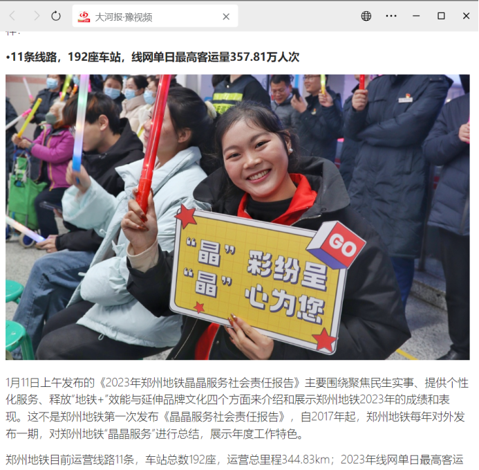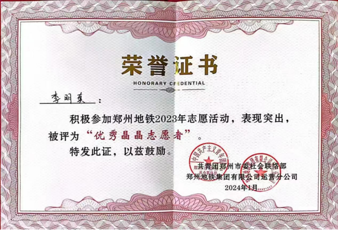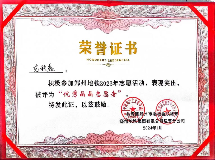 2024年1月11日上午,郑州地铁在紫荆山站负一层举办以“‘晶’彩纷呈,‘晶’心为您”为主题的2023年度“晶晶服务”社会责任报告发布会。beat365官网建筑工程学院范秋鑫、李明真、李俊一三位同学被授予郑州地铁“优秀晶晶志愿者”称号。