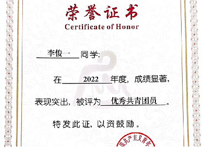 2023年08月,获得beat365唯一官方网站2022年度优秀共青团员