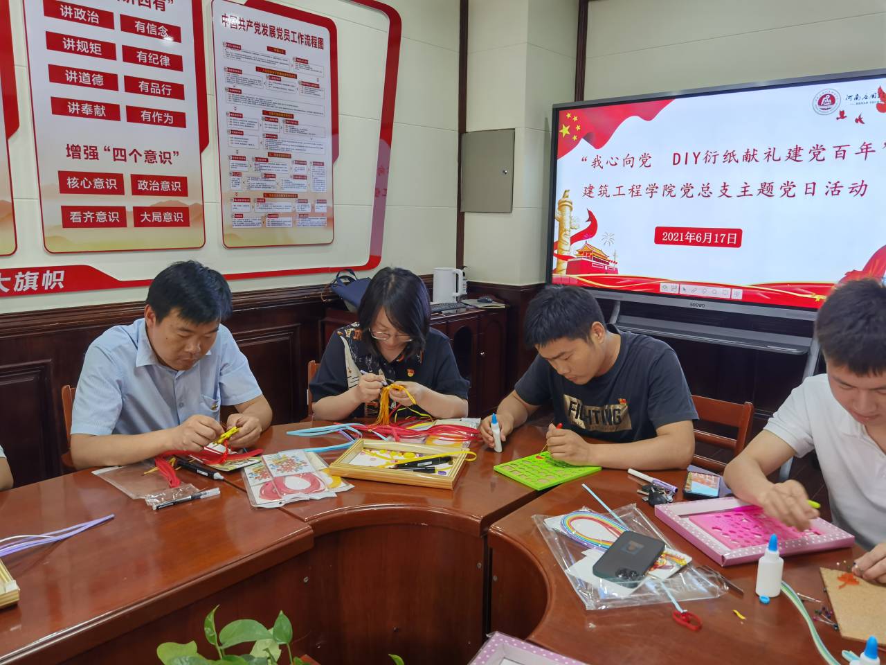 为庆祝中国共产党成立100周年,开展党史学习教育活动,增强党组织的凝聚力和向心力,6月17日,建筑工程学院党总支组织开展了“我心向党 DIY衍纸献礼建党百年”主题党日活动。党员教师、学生党员代表积极参与,以喜闻乐见的艺术形式向建党100周年献礼。